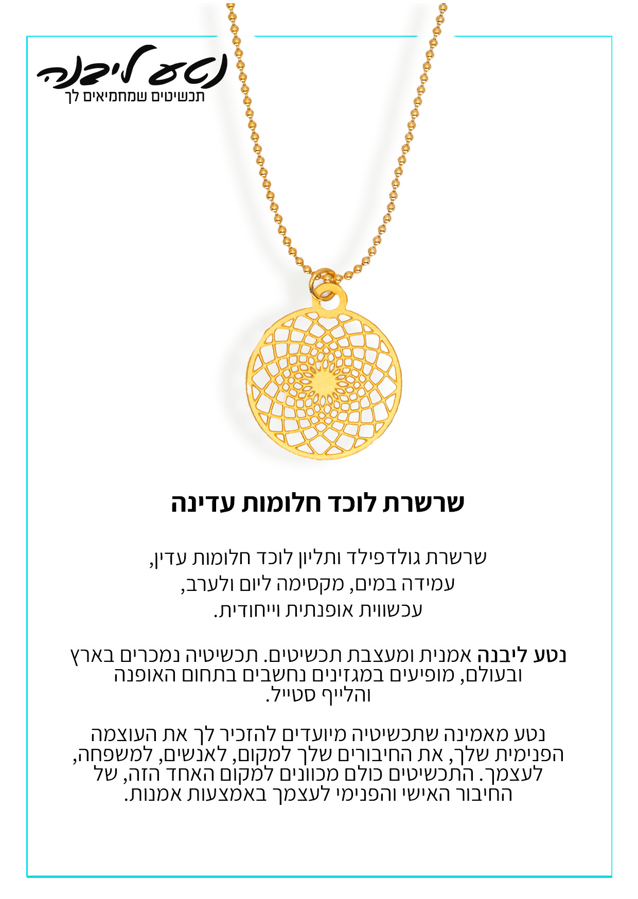 אנחנו מעניקים אחריות על ציפוי התכשיטים ואיכות הרכבתם למשך שנה מיום הקניה. לאחר מכן יש אפשרות לציפוי חדש או תיקון בתשלום. תכשיט פגום ניתן להעביר אלינו לתיקון באמצעות הדואר או באופן אישי בתיאום מראש, בסטודיו בכפר יונה.